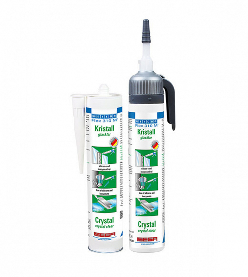 WEICON Flex 310 M Кристалл можно использовать в технологии обработки пластмасс, в строительстве с использованием металлических конструкций, в резервуаростроении и аппаратостроении, в вентиляционной технике и технике кондиционирования воздуха, в электропромышленности, при производстве светильников, при оформлении выставочных павильонов и торговых помещений, а также везде, где непригодны силиконы или силиконосодержащие продукты.