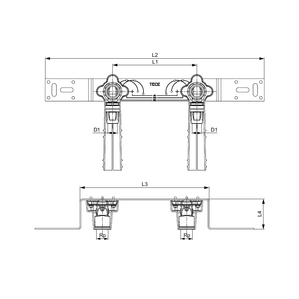 TECE  Монтажный комплект с настенными уголками для смесителя, латунь 16 × Rp 1/2"  8720100