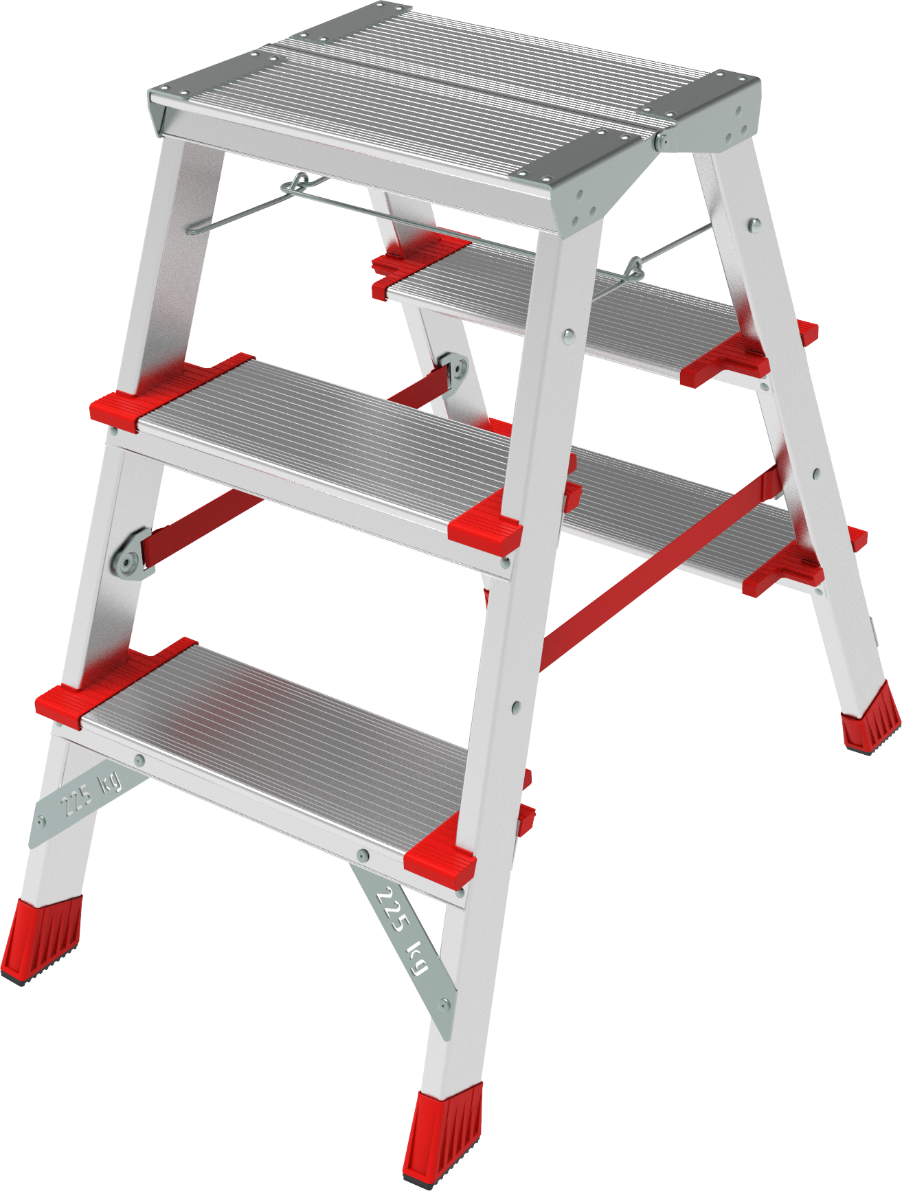 • Ориентация ступеней на обе стороны позволяет работать, не переставляя стремянку и тем самым экономя время