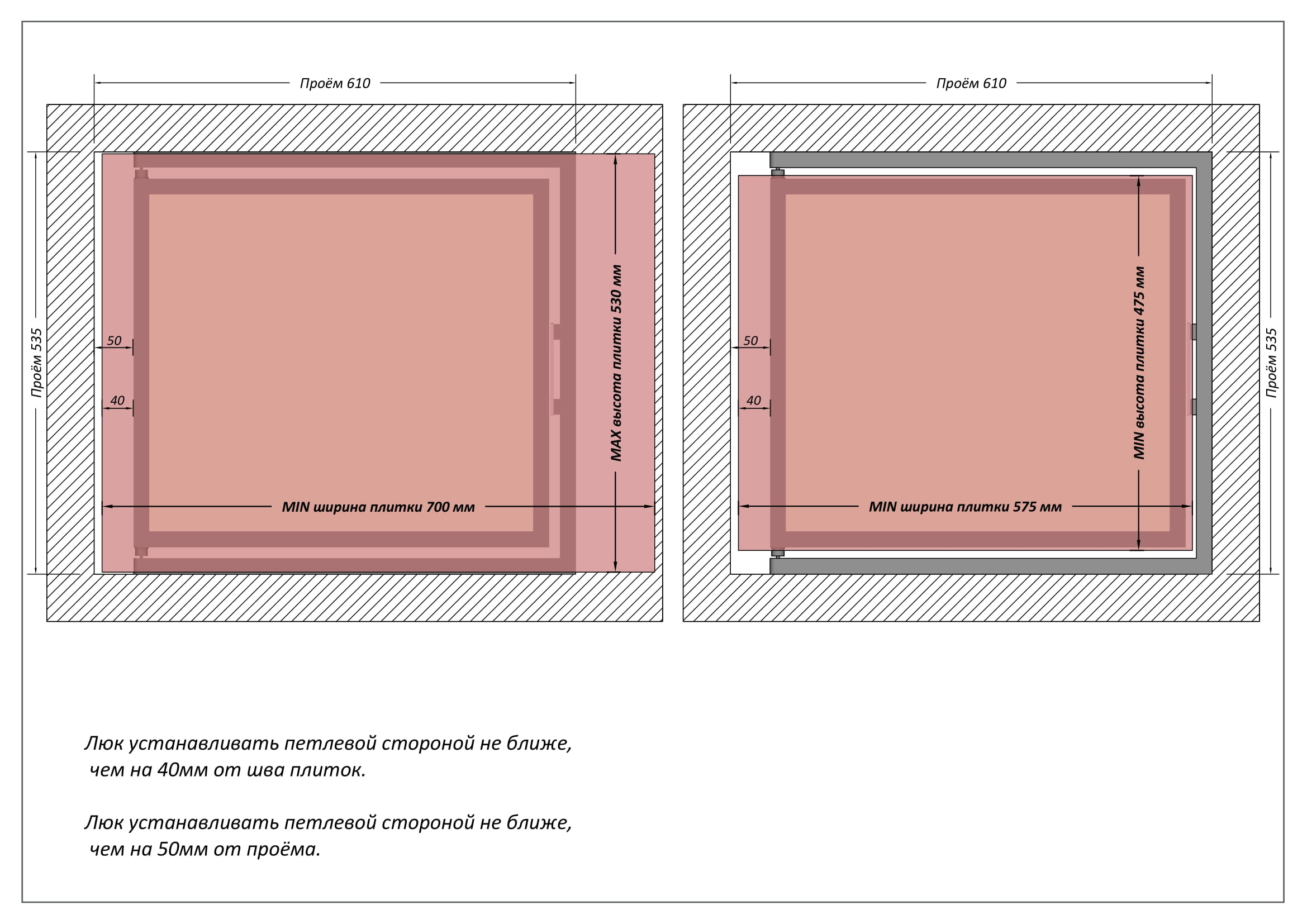 - люк сантехнический 600х500 не имеет провисания под тяжестью облицованного материала;