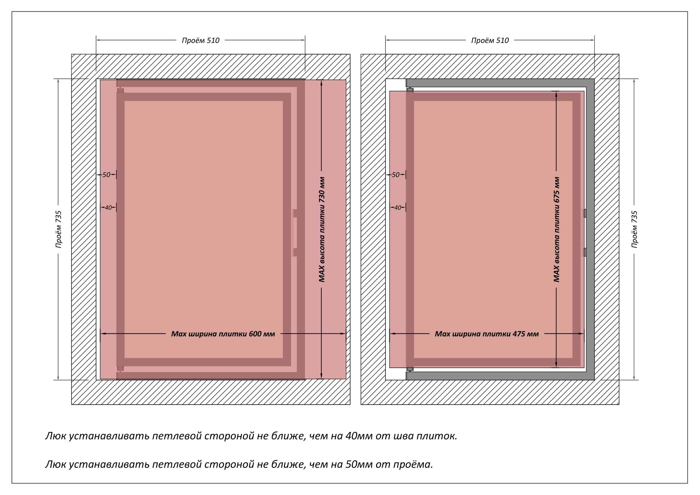 - у ревизионных люков 50 на 70 см отсутствуют провисания под тяжестью облицованного материала;