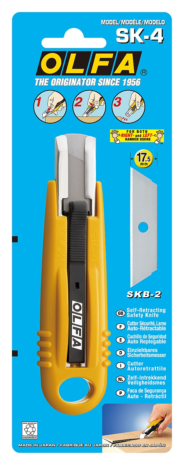 У ножа SK-4 имеется возвратная пружина: как только теряется контакт между лезвием и рабочей поверхностью, пружина автоматически убирает лезвие в корпус.