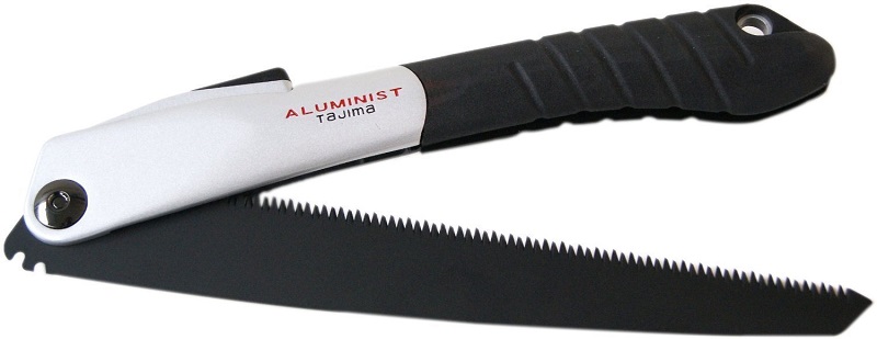 Складная ножовка с литой алюминиевой рукояткой, покрытой прочным эластомерным противоскользящим покрытием и полотном со фторовым покрытием для уменьшения внутреннего сопротивления