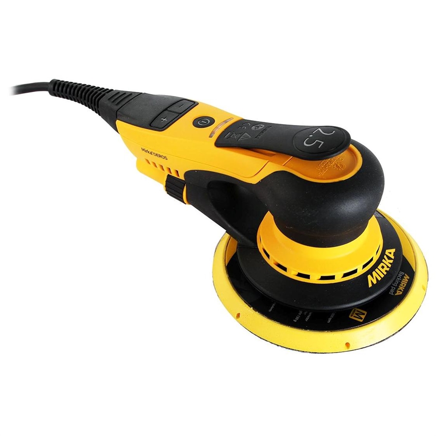 - Электрическая роторно-орбитальная шлифовальная машинка Mirka DEROS 625CV с подошвой 150 мм и орбитой 2.5 мм.