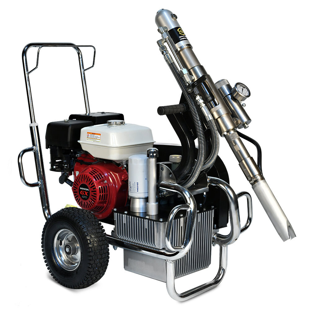 • работа на бензине: позволяет выполнять окраску в условиях отсутствия электросетей;