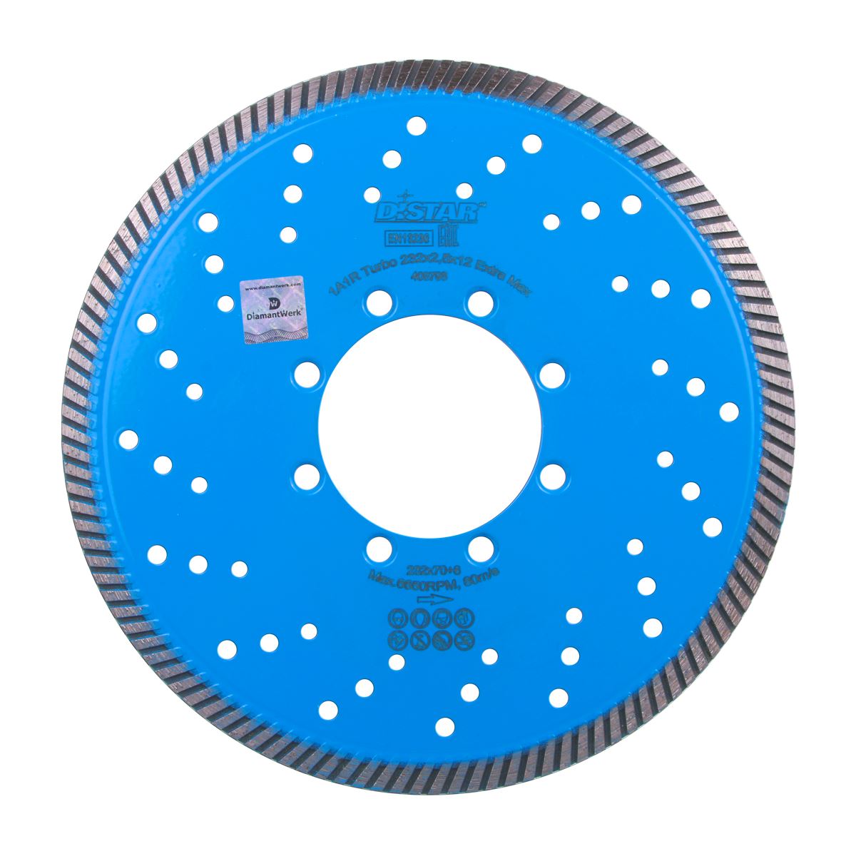 Алмазный отрезной диск DISTAR TURBO EXTRA MAX применяется для обработки твердых материалов, в частности хорошо показывает себя в резке бетона (как армированного, так и неармированного), всех видов кирпича включая огнеупорного, песчаника, а также тротуарной плитки. Диск способен обеспечивать максимально надежную работу на протяжении всего срока эксплуатации, при достаточно высоком уровне производительности (до 1,1 погонного метра в минуту). Обладает достаточно большим ресурсом работы, при обработке до 5 квадратных метров, при резке до 160 погонных. Допускается работа без дополнительного охлаждения, поскольку оно хорошо обеспечивается за счет увеличенного количества отверстий в диске.