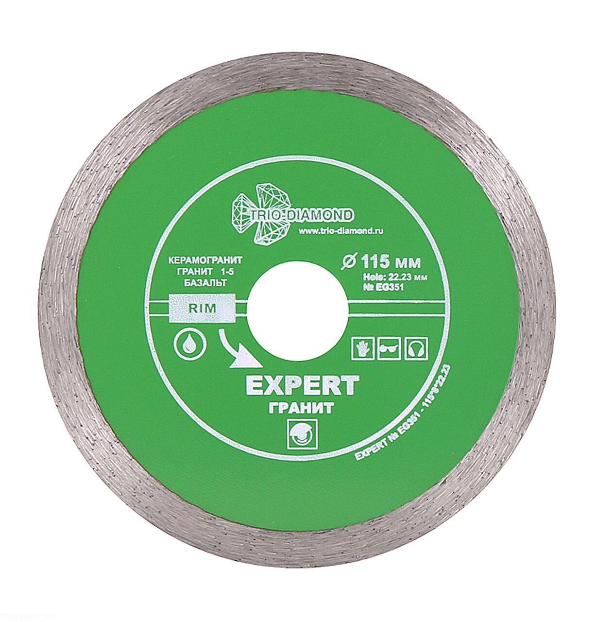 Особенности: диски со сплошной режущей кромкой, произведены методом горячего прессования. Обеспечивают гладкий ровный рез без сколов, применяются с водяным охлаждением.