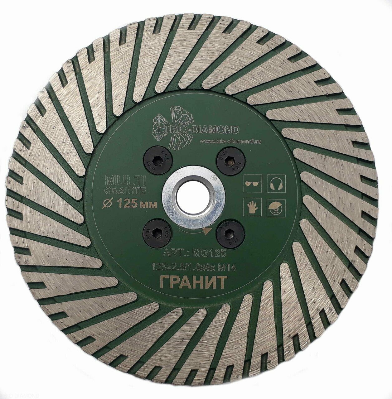 Особенности: Универсальные диски для работы с натуральным камнем. За счет увеличенной площади рабочей поверхности позволяют выполнять широкий спектр работ по резке, шлифовке и снятию фасок. Фланец М-14 позволяет устанавливать данный диск на УШМ без зажимной гайки.