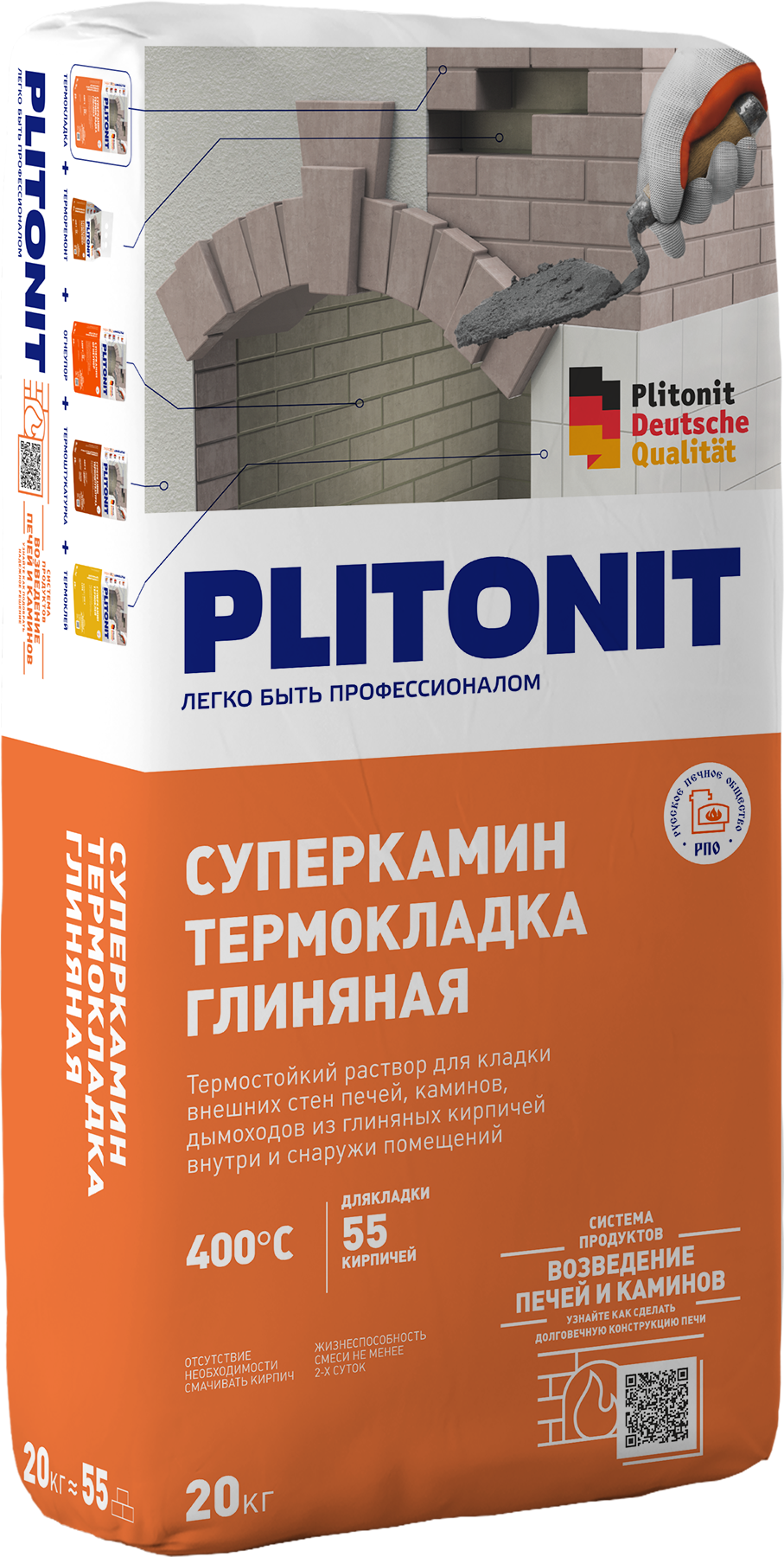 Если Вам необходима штукатурка для печи или штукатурка камина используйте PLITONIT СуперКамин ТермоШтукатурка. Для облицовки печи или камина используйте термостойкий клей для плитки PLITONIT СуперКамин ТермоКлей.