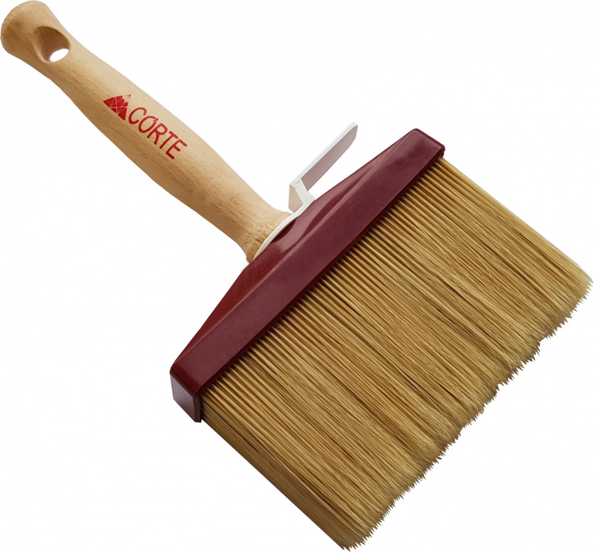 Кисть-макловица PROFI CORTE размером 120х30 мм с отборной синтетической щетиной канального типа. Кисть используется для нанесения грунтовок, белил, в/д и в/э красок, морилок, обойного клея. Артикул:  143120