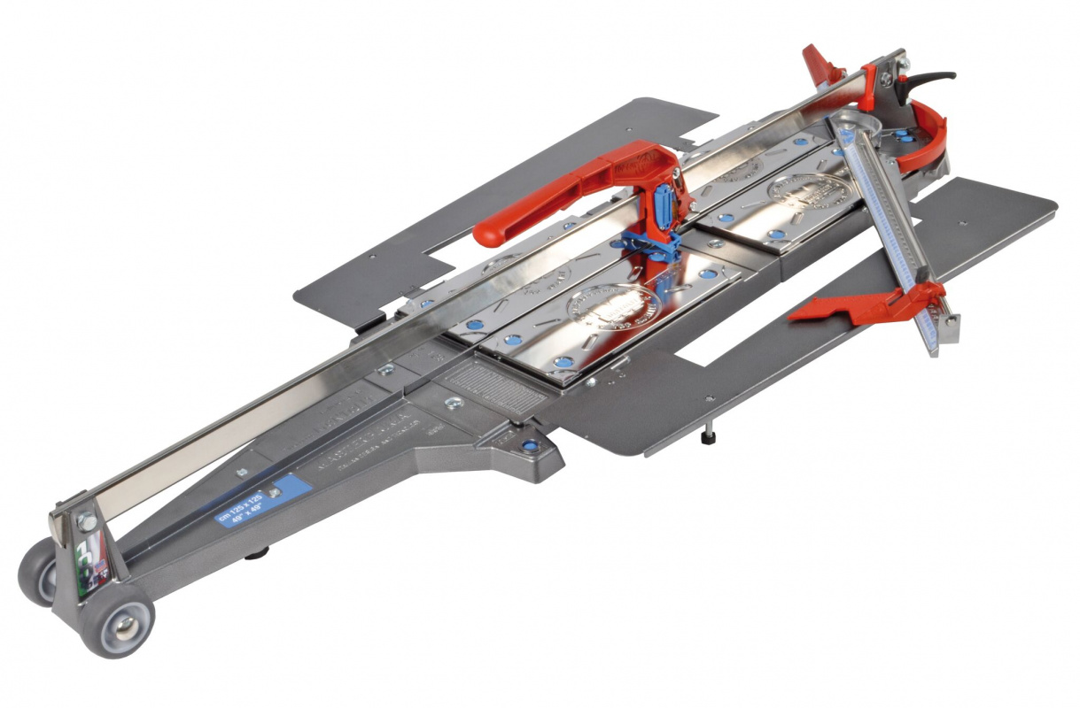 Станок оснащён быстросъёмным титановым роликом и двумя нишами для хранения запасных роликов. В процессе работы режущий элемент автоматически смазывается с помощью лубрикатора и имеет колоссальный ресурс. Модель имеет специальное отверстие для хранения на вертикальных поверхностях. Модель оснащена колёсами для облегчённого передвижения. Плиткорез рассчитан на профессиональное использование и гарантийный срок службы составит 15 лет.