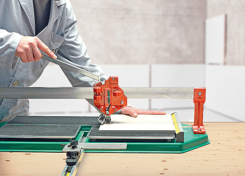 - Благодаря пружинному креплению плиткореза к столу, можно работать с хрупкими материалами