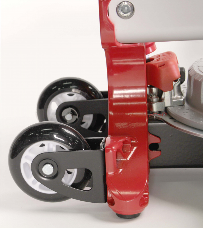 - Лёгкая транспортировка: резиновые колёса на подшипниках и рукоятка.