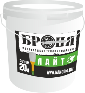 При производстве модификации Броня Лайт значительно улучшена рецептура, материал выпускается в таре 5,10 и 20 литров (традиционно цена за 1 литр во всех видах тары идентична), улучшены его теплофизические и физические свойства. Помимо этого Броня Лайт, так же как и другие модификации имеет сертифицированную форму выпуска с группой горючести НГ (не горючий).
